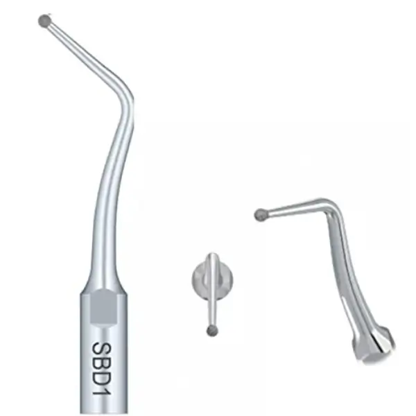 E2&ED2:- 95° holder for U- File With a shank diameter of 0.57mm, This tip is usually used for molar root canal cleaning. E3&ED3:- With cooling spray disabled, this tip is used for lateral thermal condensation of gutta percha. E3D&ED3D:- Used To Remove calcification and bad filling material from pulp cavity and overhang pulp chamber. E4&ED4:- Quickly remove obstructions and broken instruments in the mid and upper third of large and straight canals. E4D&ED4D:- Diamond coated, for retreatments or extremely hard materials. E5&ED5:- Useful For quickly eliminating calculus and temporary cements. E5D&ED5D:- Diamond Coated, For enhanded cutting and abrasion. Especially useful for removing very hard materials on the canal wall. E10D&ED10D:- diamond coated, used for efficient apical polishing of anterior teeth.