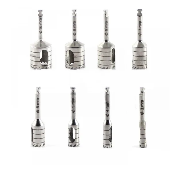 NMD 8 PCS Dental Implant External Irrigation Drills for Implant Surgery, Drill Kit is used for drilling an implanting hole to push the expander. High Quality Stainless Steel, Titanium finished with Depth Markings & a FREE Stand / Holder. Drill Sizes :- 1.0mm 2.5mm 2.8mm 3.2mm 3.6.5mm 4.2mm 4.8mm 5.2mm Marking Depths on the the drills for accurate drilling, sizes 6.0mm, 8.0mm, 10.0mm, 11.5mm, 13.0mm & 16.0mm.